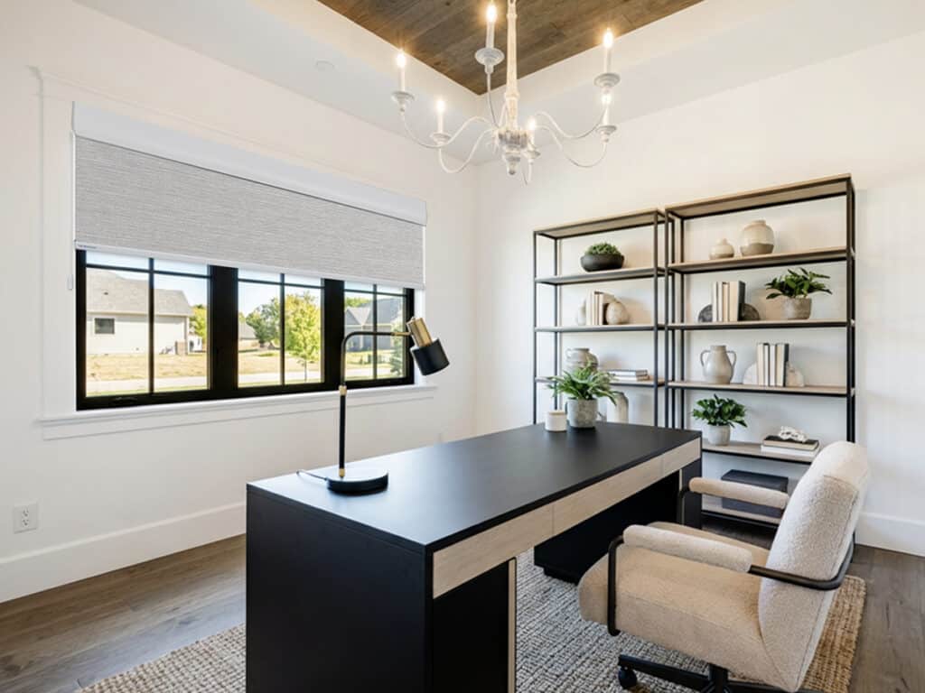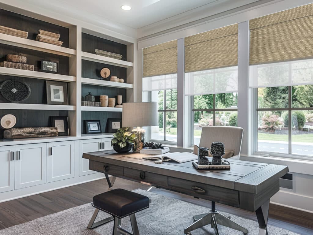 Home offices also experience changing light conditions throughout the day. Morning brightness, midday glare, and afternoon heat can all affect comfort and focus. Smart, strategic window treatments help regulate these variables, creating a workspace that supports productivity while maintaining a polished, professional appearance.