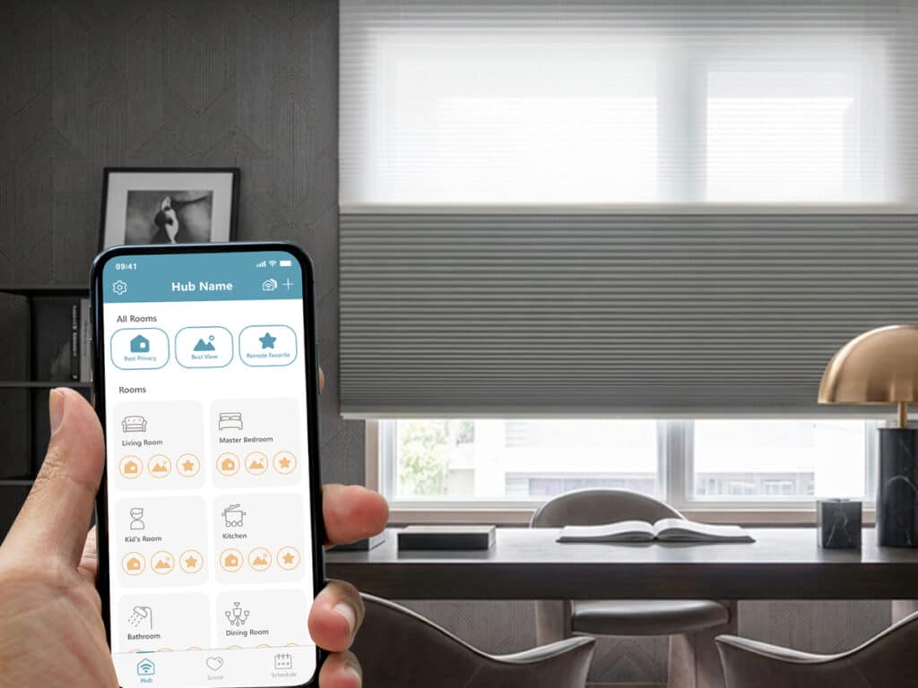 - Norman Smart Motorization: Norman smart motorized shades are a great fit for home offices because they let you adjust light and privacy without interrupting your work. With control from a mobile device or remote, you can raise or lower the shades while staying focused on tasks, calls, or meetings. This added convenience helps maintain a comfortable workspace throughout the day, supporting better concentration and productivity.