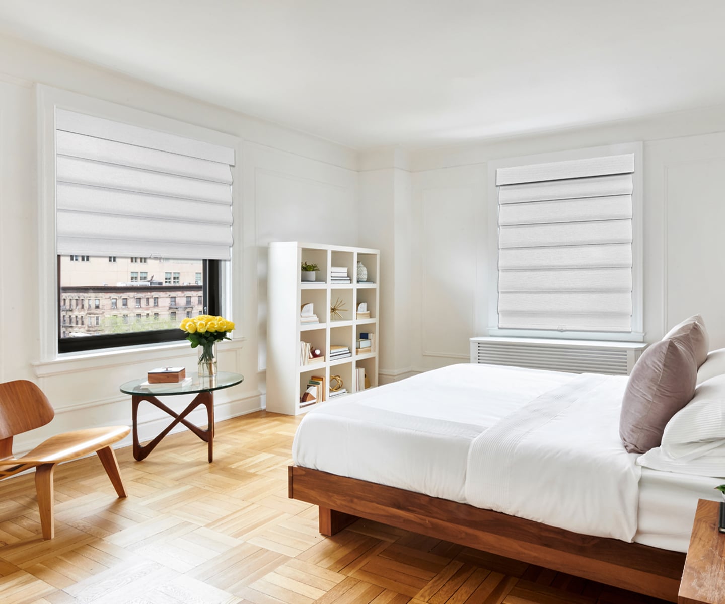 A collection of sculpted cascading folds, refined room darkening and light filtering fabrics, cordless PrecisionLift technology, motorization options, and more. SmartFold offers a beautiful solution that brings privacy, comfort, and tailored style to every moment — morning, afternoon, or night.