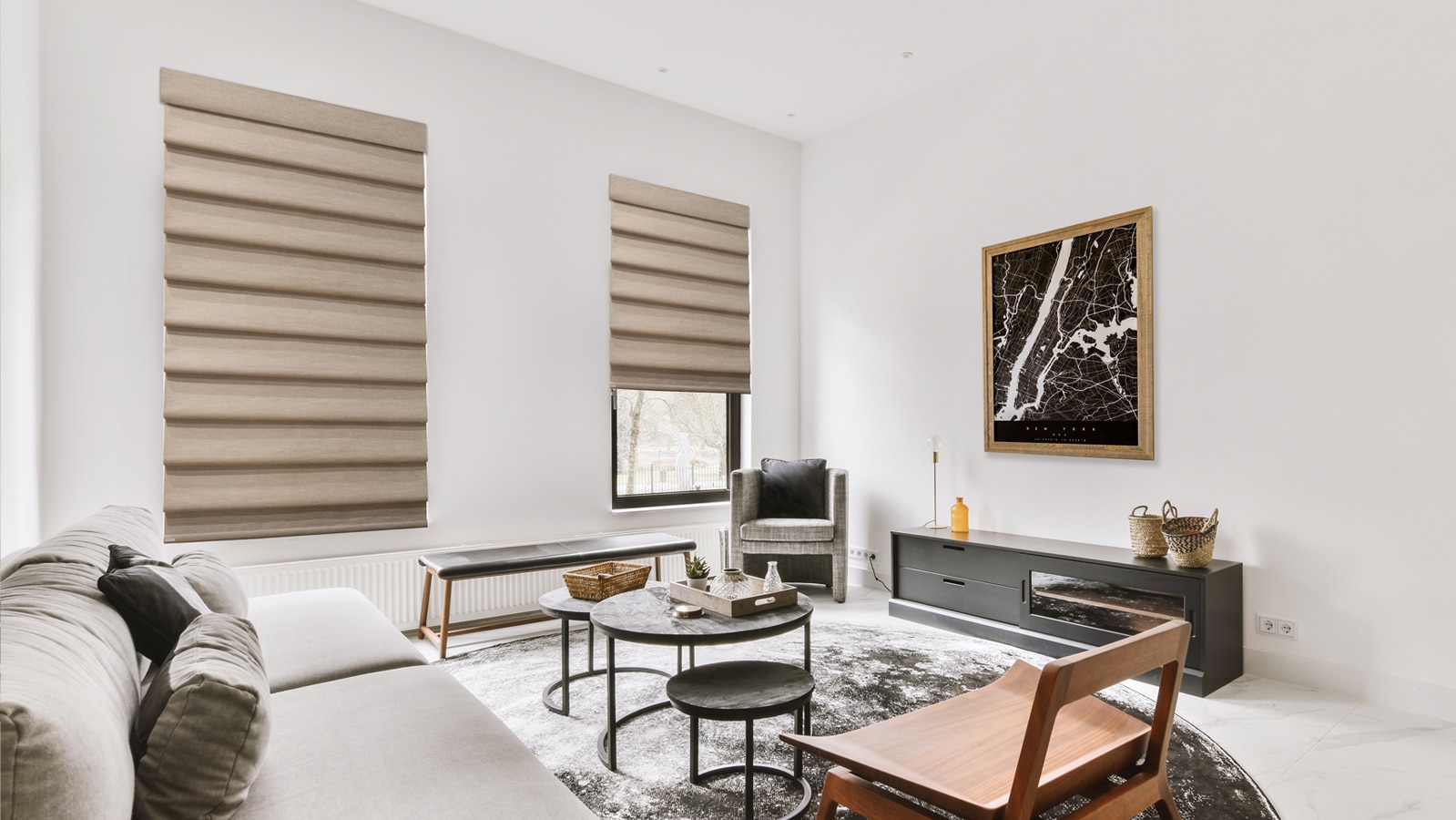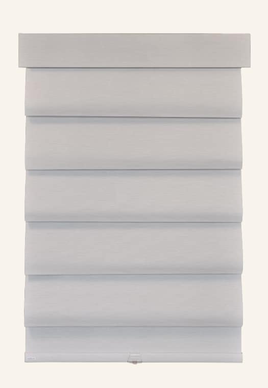 SmartFold is a unique window treatment that combines the timeless style of Roman shades with the modern function of a roller shade. It features cascading fabric folds that lift up for an open view and roll neatly when raised, offering both elegance and everyday practicality.